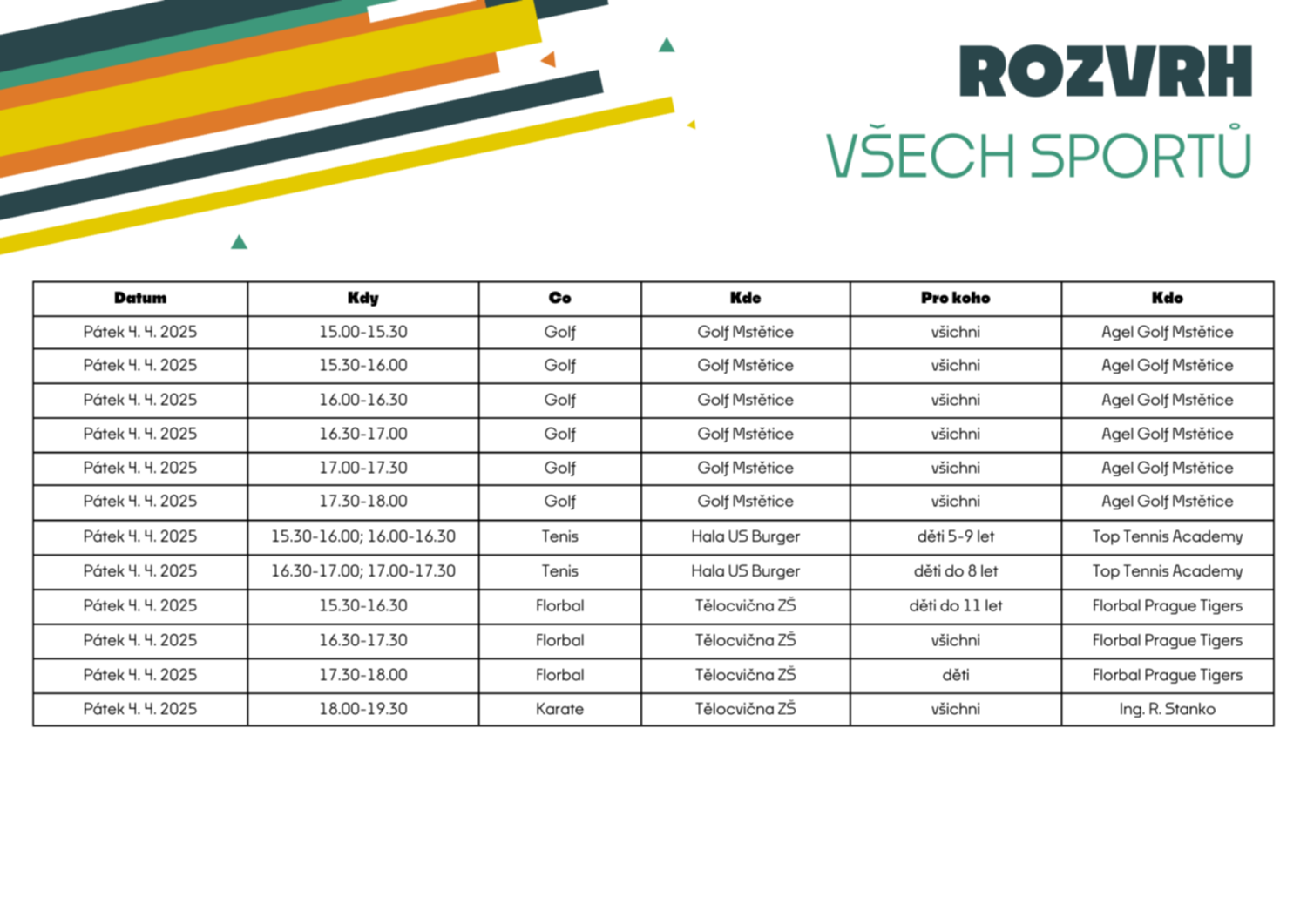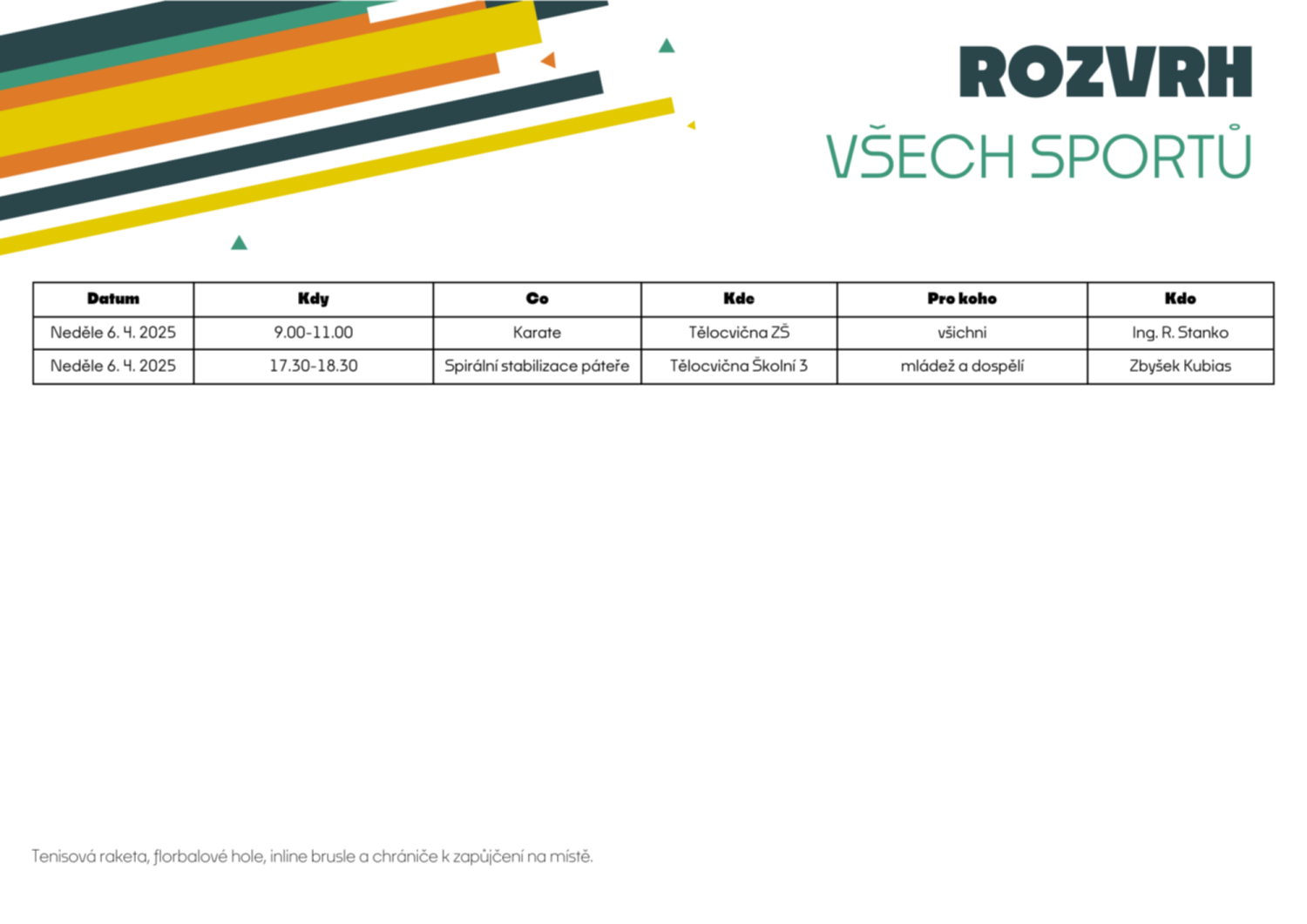 Sledujte také naše sociální sítě, kde budeme sporty postupně představovat.