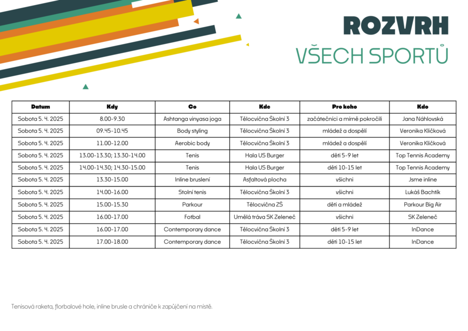 Tentokrát si budete moci zasportovat celý víkend, a to už od pátečního odpoledne.