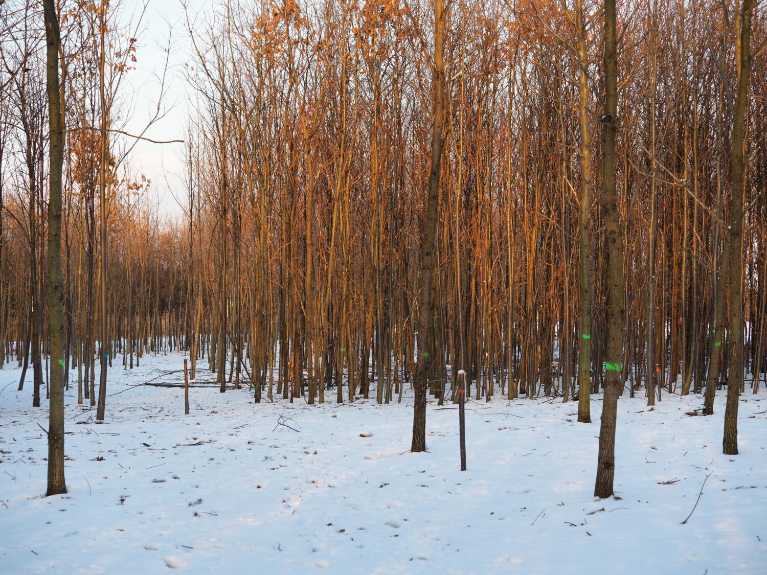 Školka na výpěstky dřevin o rozloze větší než 2,5ha byla založena dle leteckých snímků mezi léty 2010-2012. Výpěstky byly vysazeny v pěstebních řadách. Školka následně pozbyla svého využití a nevyzvednuté výpěstky začaly přerůstat. Dnes jsou tedy staré asi 12-14let. V pěstebních řadách rostou ve velice hustých sponech, dřeviny si konkurují, vytahují se za světlem a přeštíhlují se. Nachází se zde dub letní, javor mléč, lípa malolistá, olše lepkavá a habr obecný. Výsadbové spony jsou úzké, lokálně méně než půl metru. Dřeviny jsou tedy silně přeštíhlené a některé druhy trpí na keřový habitus. Dřeviny mají zhoršený zdravotní stav, vitalitu a silně sníženou perspektivu. Bez pěstebního zásahu je prakticky nemožné, aby v porostu vyrostly do budoucna stabilní dřeviny bez defektních větvení.